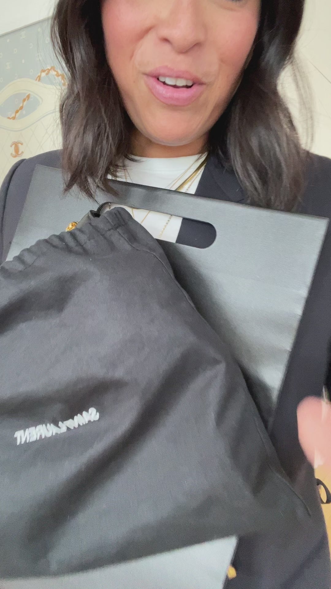 Saint Laurent Black Leather Wristlet (FULL SET)
