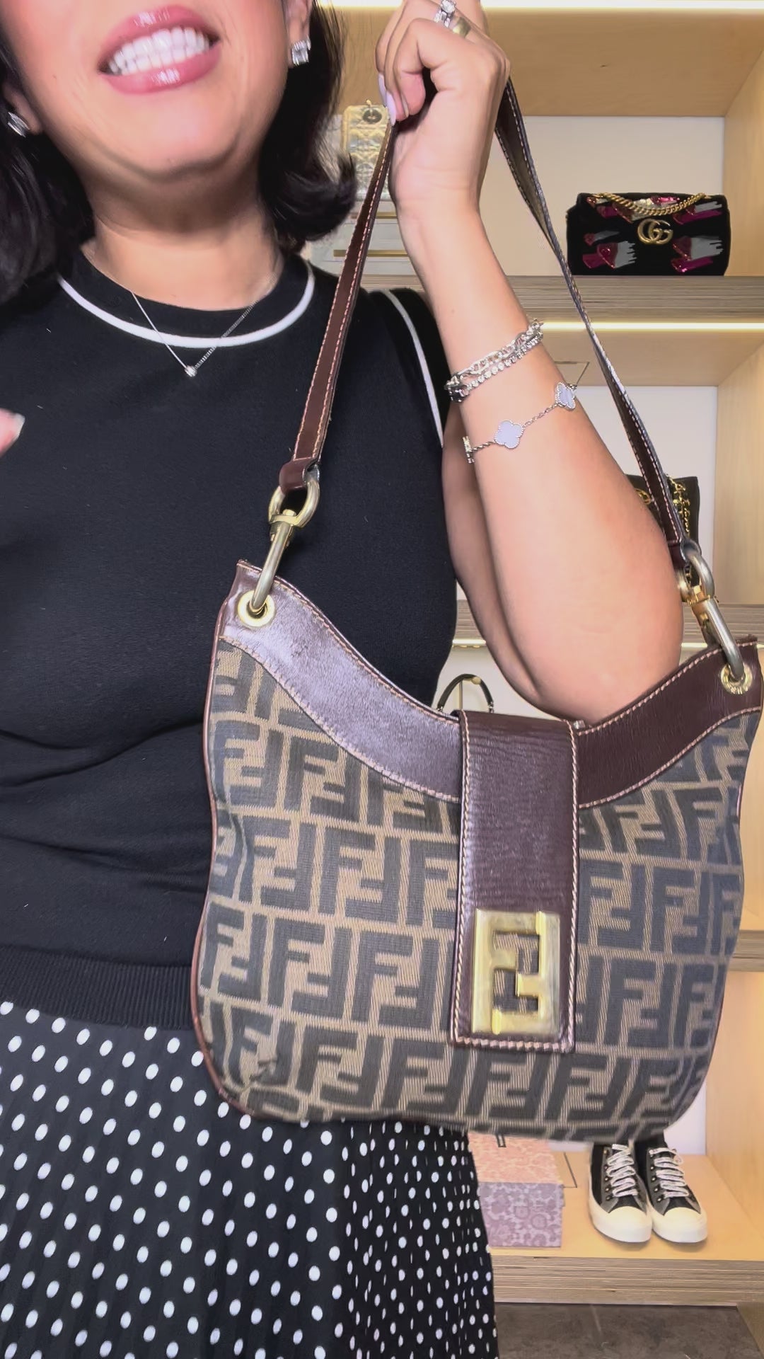 Fendi Zucca Buckle Strap Hobo
