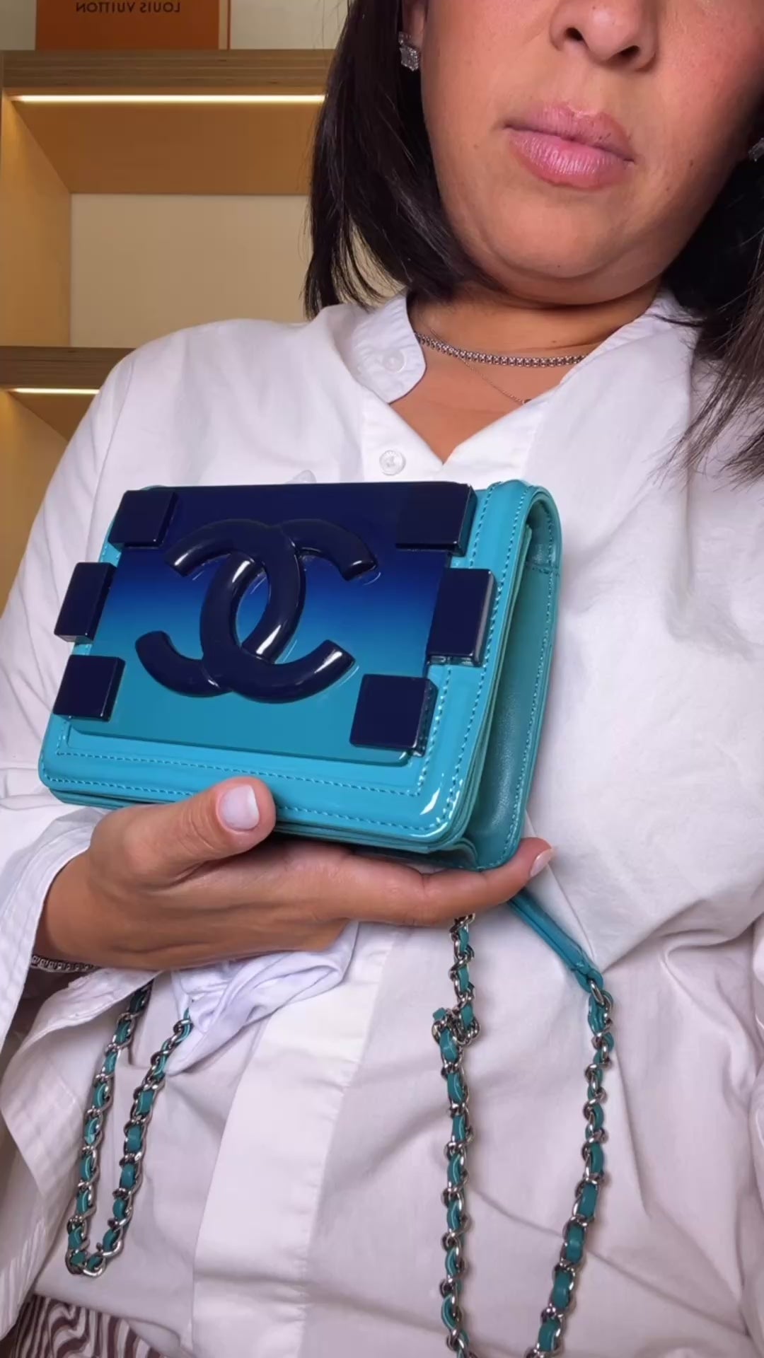 Chanel Turquoise Plexiglass and Patent Lego Boy Brick Flap