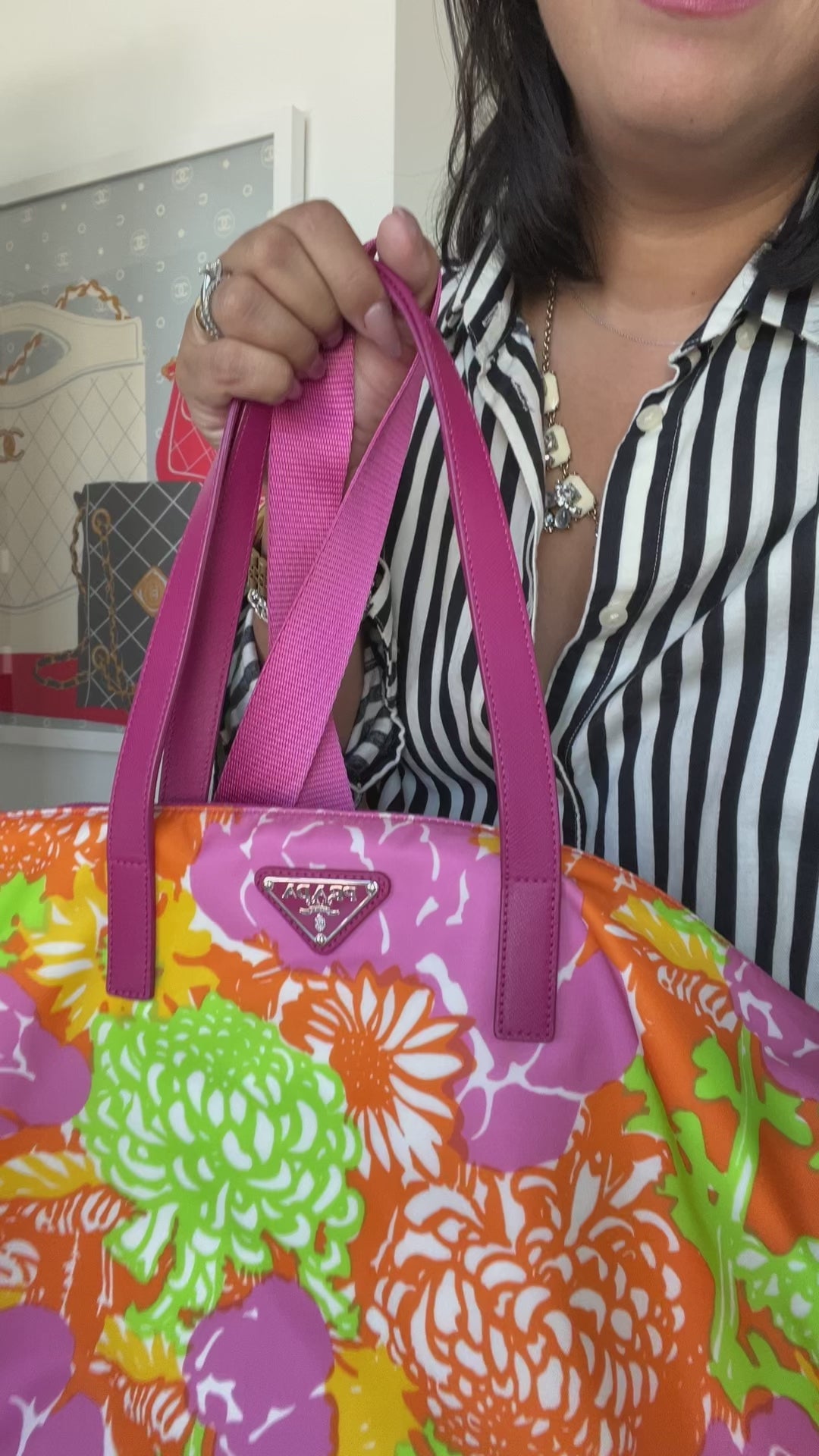 Prada Tessuto Floral Print Nylon Convertible Tote