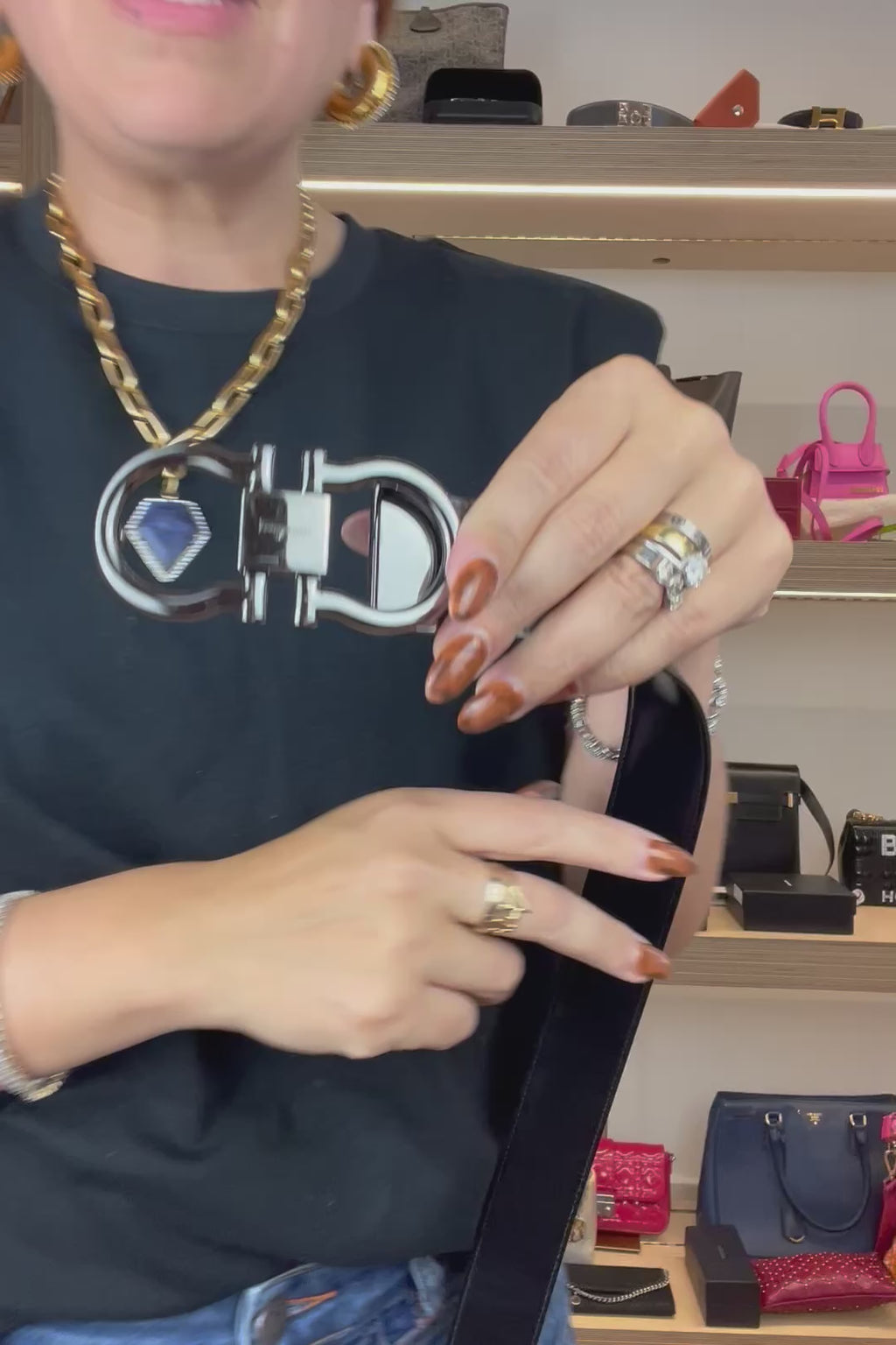 Details: Reversible belt - black and brown leather. Ruthenium hardware - deep silver. Fits like a US Women’s pant size 6.